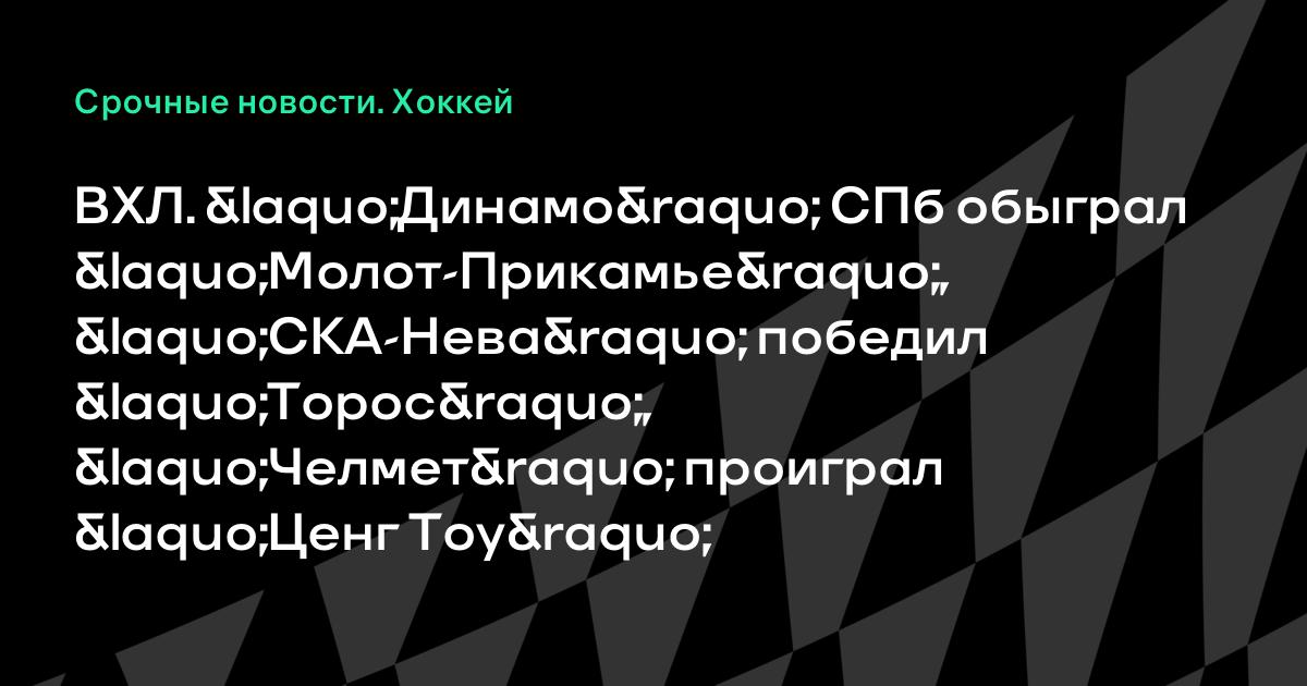 ВХЛ. «Динамо» СПб обыграл «Молот-Прикамье», «СКА-Нева» победил «Торос», «Челмет» проиграл «Ценг Тоу»