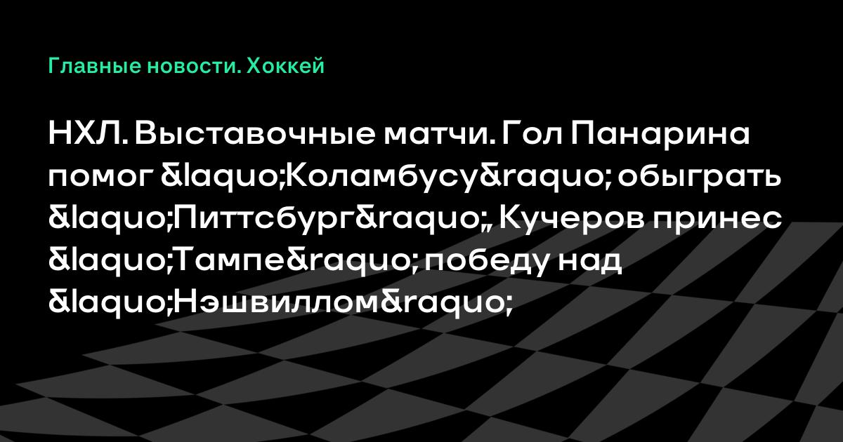 НХЛ. Выставочные матчи. Гол Панарина помог «Коламбусу» обыграть «Питтсбург», Кучеров принес «Тампе» победу над «Нэшвиллом»