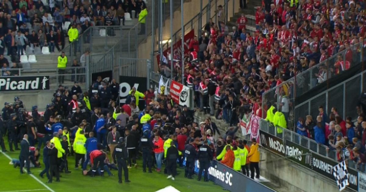 #ASCLOSC La barrière de la tribune visiteurs des lillois a cédé à Amiens pic.twitter.com/wJ9xMZaftP