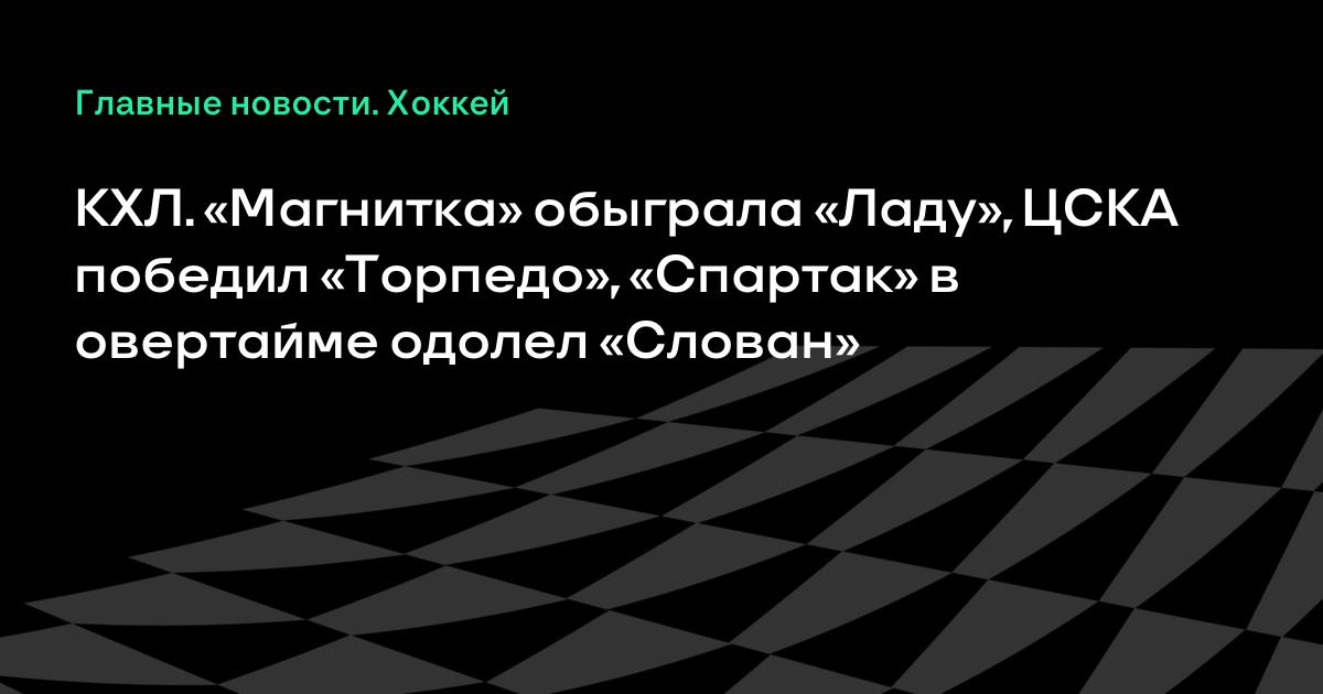 КХЛ. «Магнитка» обыграла «Ладу», ЦСКА победил «Торпедо», «Спартак» в овертайме одолел «Слован»