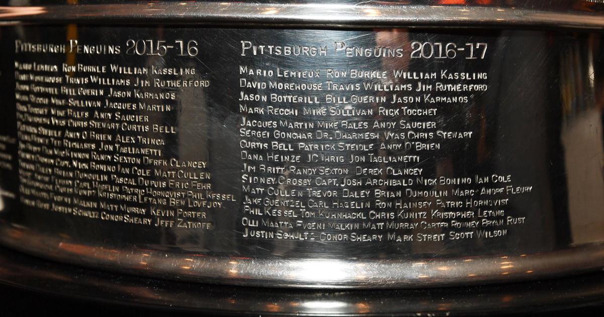 PSA: All the #Pens names are spelled correctly on the Cup. It is engraved by hand and some carvings just aren’t as prominent as others. pic.twitter.com/vgRoRLIDmP