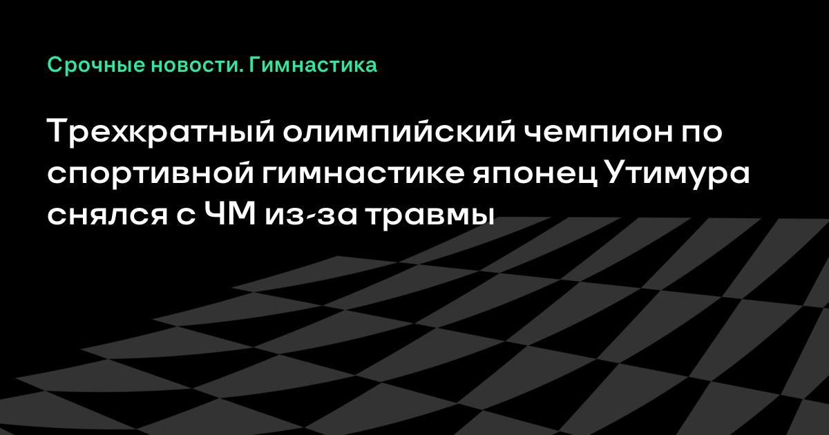 Трехкратный олимпийский чемпион по спортивной гимнастике японец Кохэи Утимура снялся с чемпионата мира, который проходит в Монреале, из-за травмы ноги.