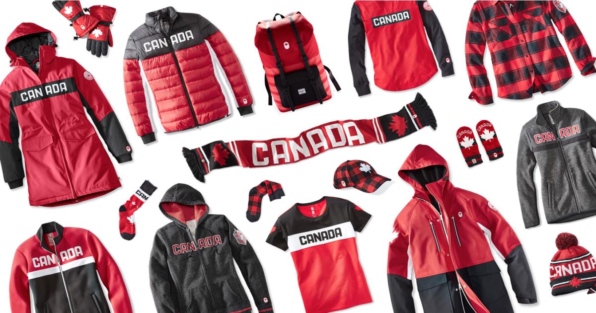 Коллекция одежды разработана совместно с компанией Hudson’s Bay. Форма выполнена в технике колор-блокинг, сочетающей красный, белый и черный цвета, также на одежде присутствуют графические украшения и символ Канады – кленовый лист.