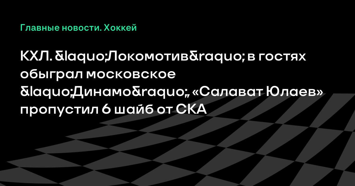 КХЛ. «Локомотив» в гостях обыграл московское «Динамо», «Салават Юлаев» пропустил 6 шайб от СКА