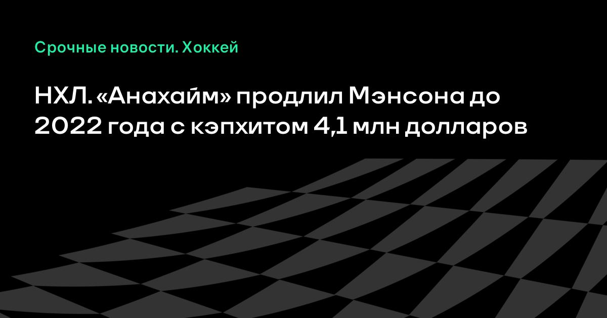 НХЛ. «Анахайм» продлил Мэнсона до 2022 года с кэпхитом 4,1 млн долларов