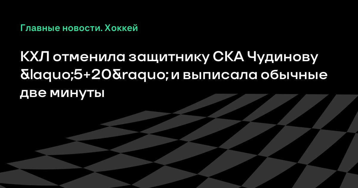 Спортивно-дисциплинарный комитет КХЛ переквалифицировал наказание для защитника СКА Максима Чудинова, отменив удаление до конца игры (5+20) в матче против «Салавата Юлаева» (6:1) и выписав малый штраф (2 минуты).