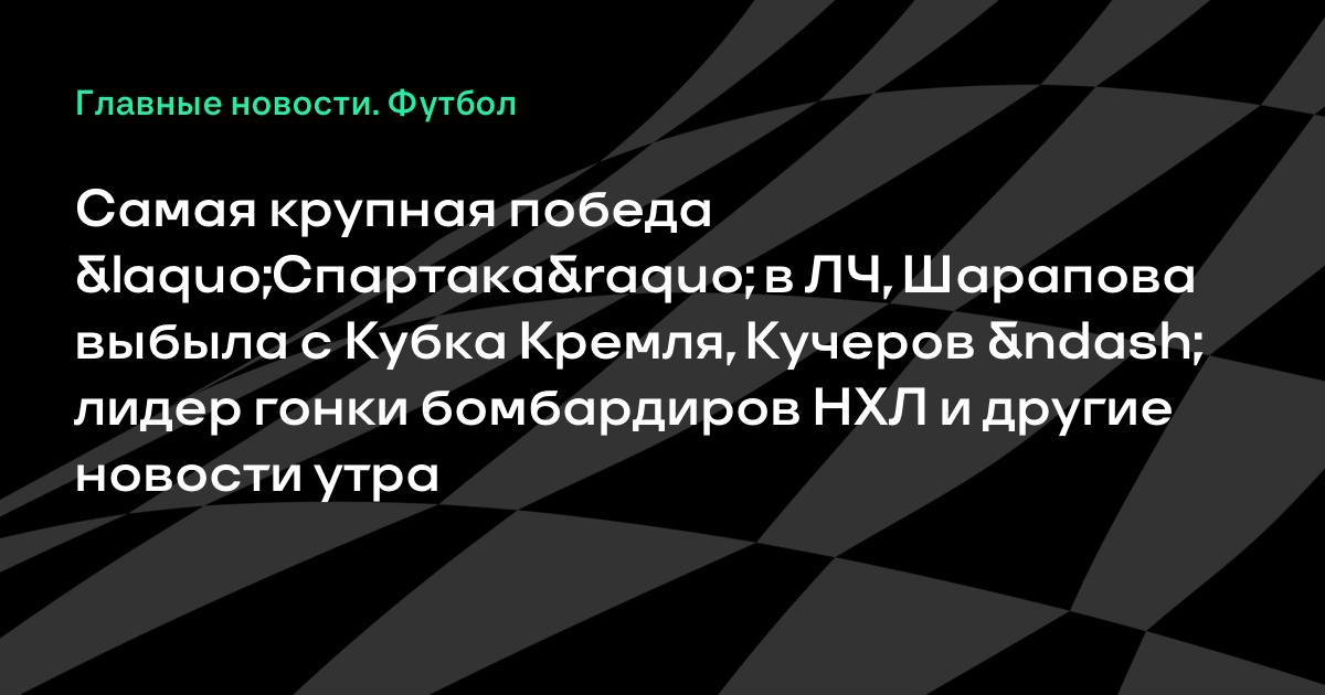 Самая крупная победа «Спартака» в ЛЧ, Шарапова выбыла с Кубка Кремля, Кучеров – лидер гонки бомбардиров НХЛ и другие новости утра