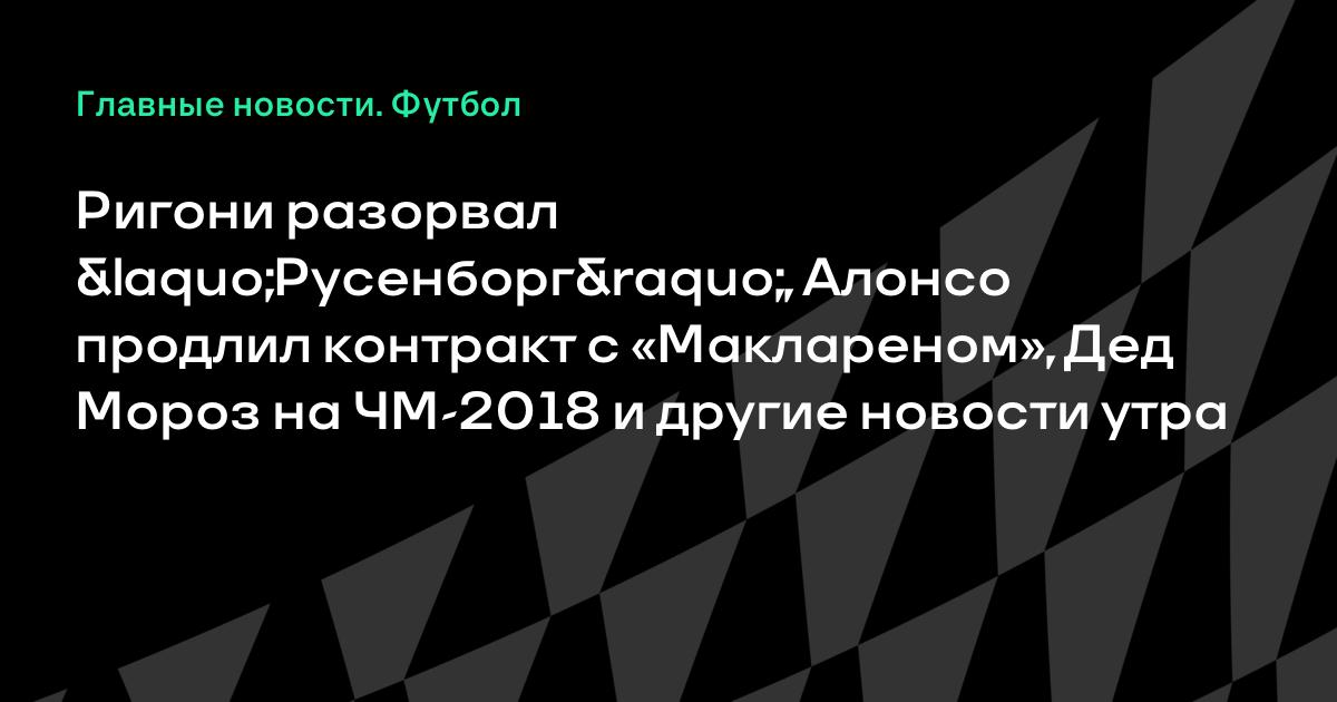 Ригони разорвал «Русенборг», Алонсо продлил контракт с «Маклареном», Дед Мороз на ЧМ-2018 и другие новости утра