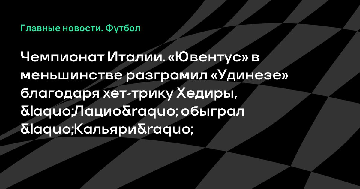 Чемпионат Италии. «Ювентус» в меньшинстве разгромил «Удинезе» благодаря хет-трику Хедиры, «Лацио» обыграл «Кальяри»