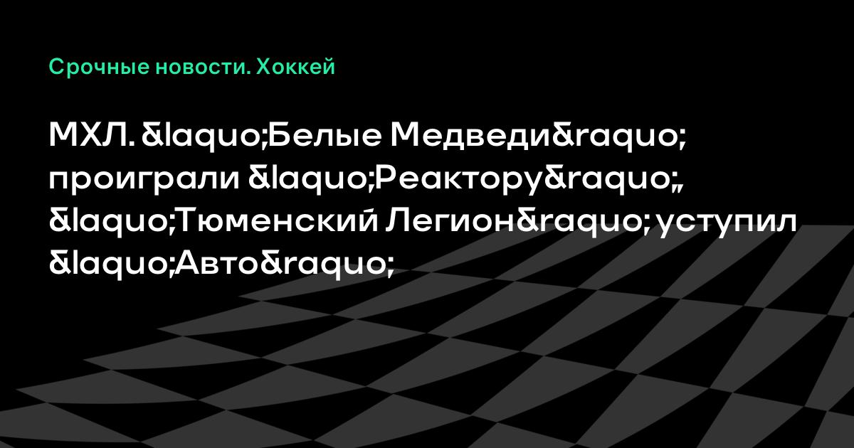 МХЛ. «Белые Медведи» проиграли «Реактору», «Тюменский Легион» уступил «Авто»
