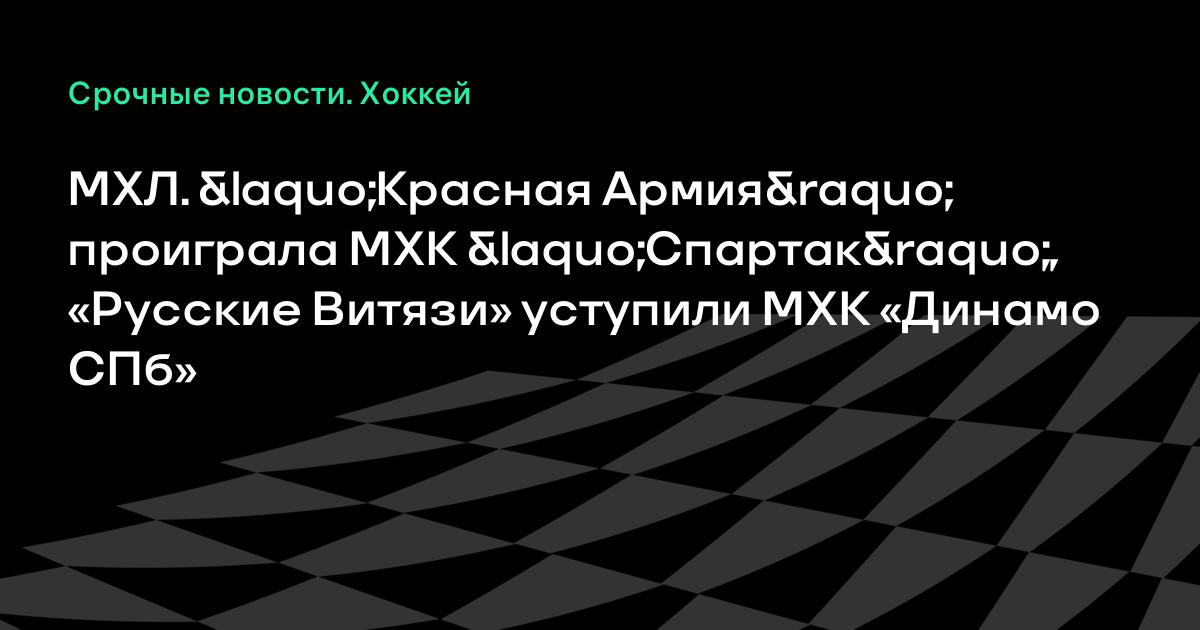 МХЛ. «Красная Армия» проиграла МХК «Спартак», «Русские Витязи» уступили МХК «Динамо СПб»