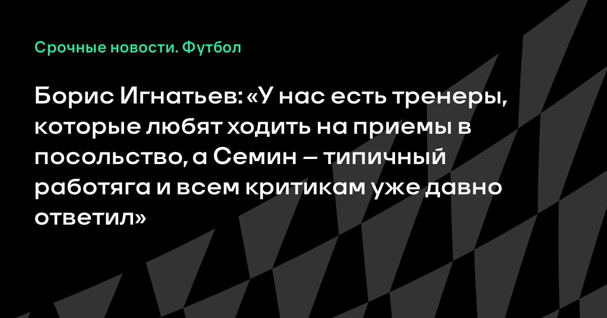 Борис Игнатьев: «У нас есть тренеры, которые любят ходить на приемы в посольство, а Семин – типичный работяга и всем критикам уже давно ответил»