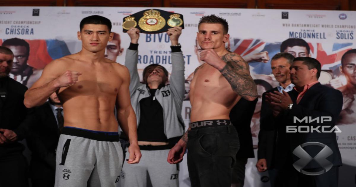 Сегодня в Монако состоялась официальная процедура взвешивания перед поединком за титул WBA в полутяжелом весе (79,4 кг). Обладатель этого титула, российский боксер Дмитрий Бивол показал на весах 79,0 кг, его соперник австралиец Трент Броадхерст — 79,35 кг.