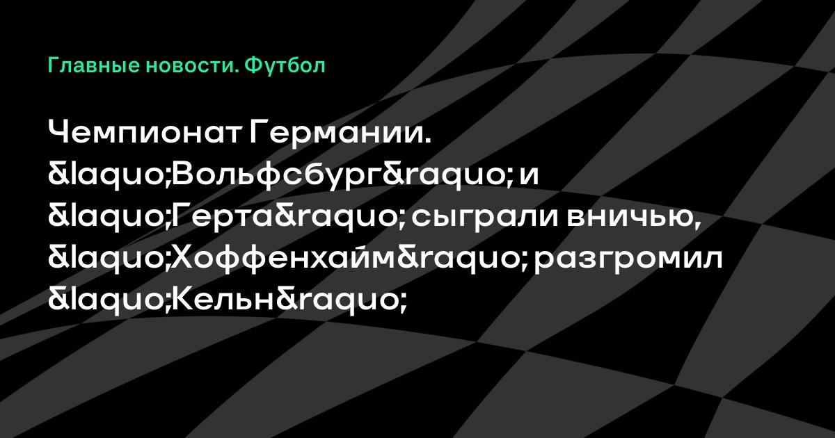 Чемпионат Германии. «Вольфсбург» и «Герта» сыграли вничью, «Хоффенхайм» разгромил «Кельн»