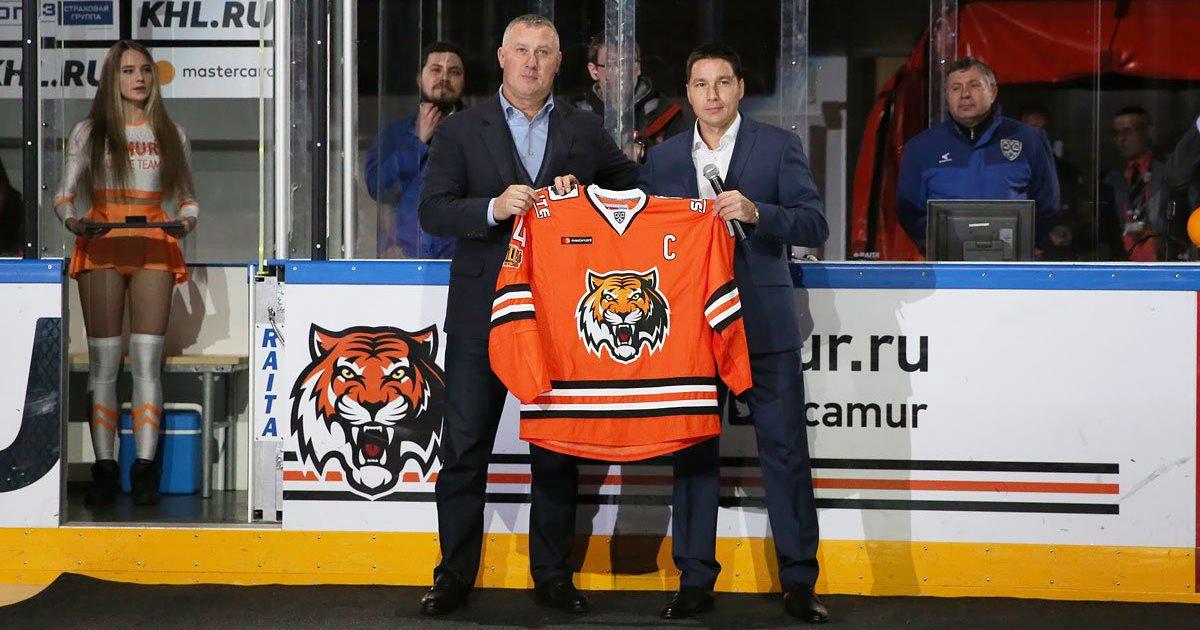 Перед матчем регулярного чемпионата КХЛ «Амур» – «Салават Юлаев» (3:1) в Хабаровске состоялась церемония чествования бывшего капитана «тигров» Дмитрия Тарасова.