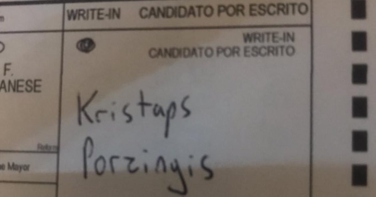 Житель Нью-Йорка проголосовал за форварда «Никс» Кристапса Порзингиса на выборах мэра города, сообщает NBC News.