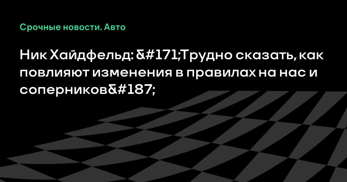 Ник Хайдфельд: «Трудно сказать, как повлияют изменения в правилах на нас и соперников»