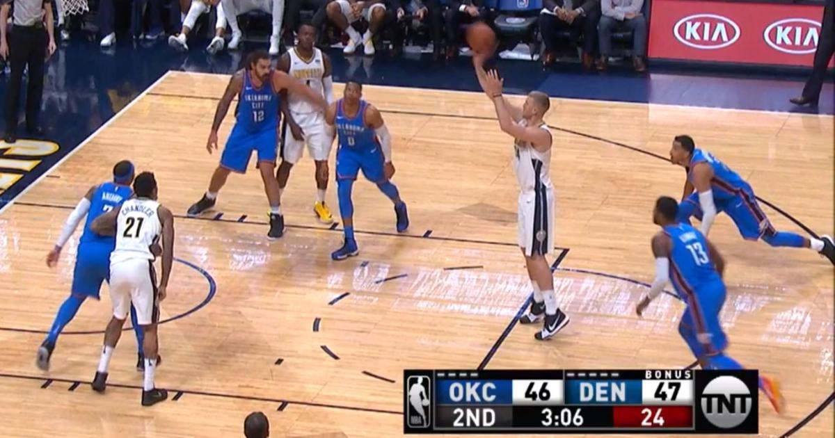 Во второй четверти матча «Денвер» – «Оклахома-Сити» во время штрафного броска Мэйсона Пламли все пять игроков «Тандер» одновременно совершили заступ за линию.