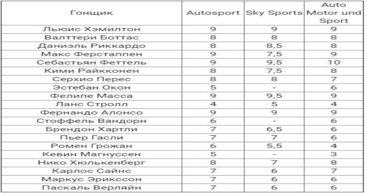 | Себастьян Феттель | 9 | 9,5 | 10 |