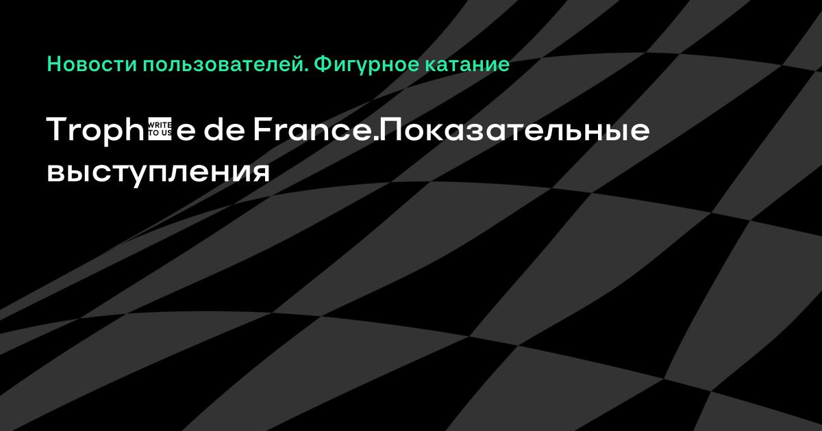 В воскресенье, 19 ноября, в Гренобле состоятся показательные выступления пятого этапа Гран-при по фигурному катанию Trophée de France. Из российских фигуристов в них примут участие Евгения Тарасова — Владимир Морозов, Алина Загитова, Мария Сотскова, Александр Самарин, Александра Степанова — Иван Букин.