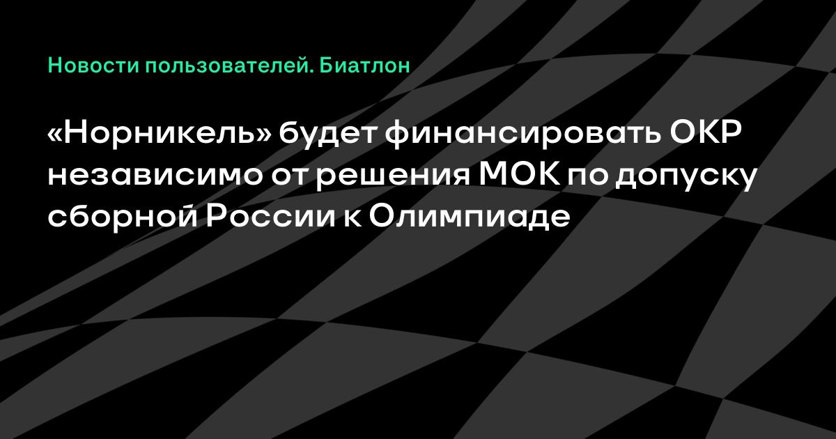 «Норникель» будет финансировать ОКР независимо от решения МОК по допуску сборной России к Олимпиаде
