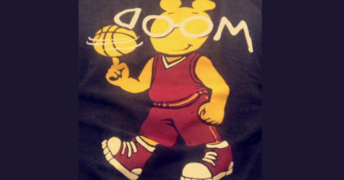 Защитник «Кавальерс» Дуэйн Уэйд предстал в футболке с изображением мультперсонажа Артура с баскетбольным мячом.
