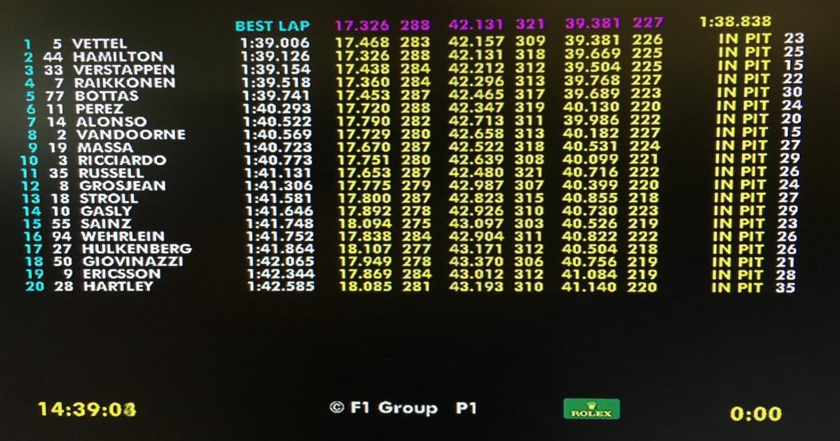 Гран-при Абу-Даби. 1-я практика. Феттель – первый, Хэмилтон – второй, Ферстаппен – третий