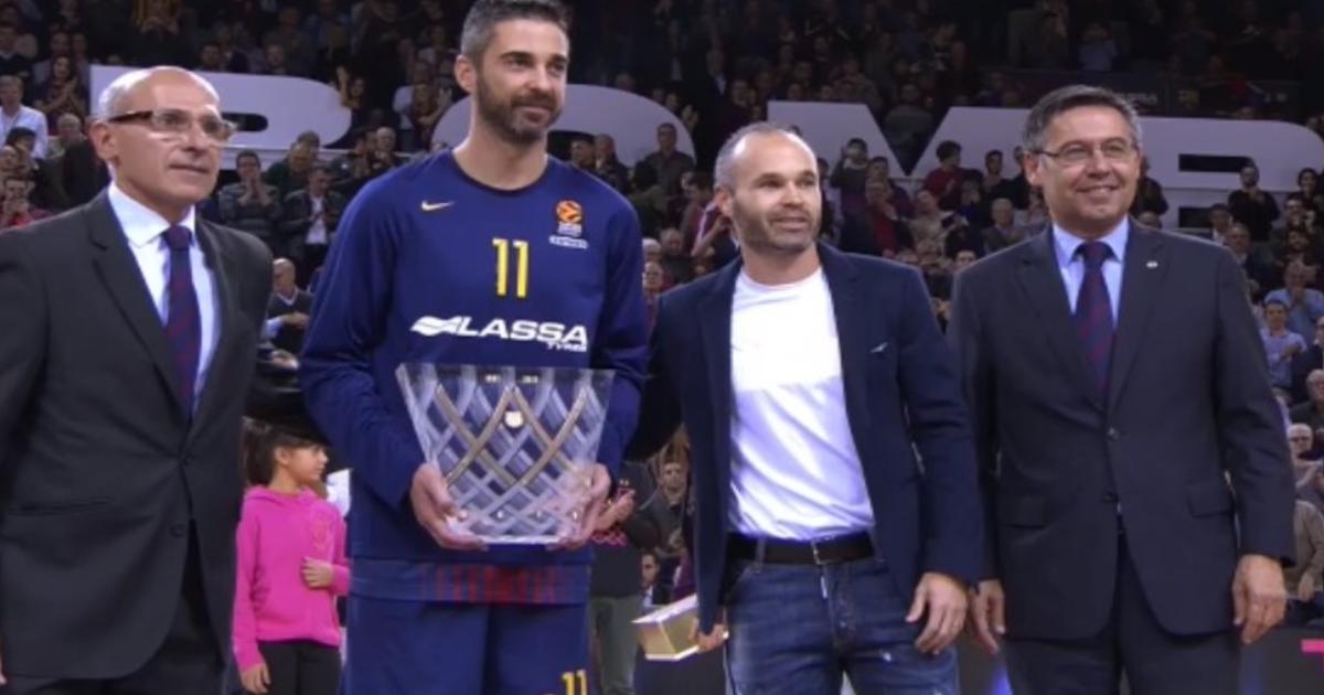 «Барселона» в рамках матча Евролиги с «Маккаби» провела церемонию в честь защитника Хуана Карлоса Наварро.