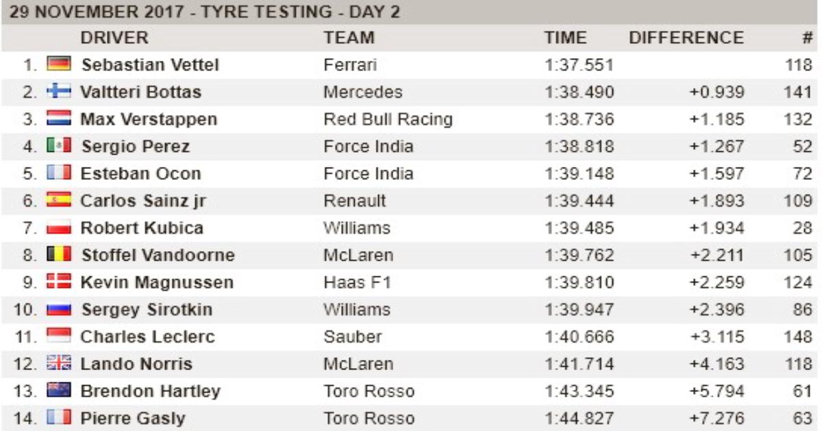 Тесты. Абу-Даби. 2-й день. Феттель показал лучшее время, Кубица опередил Сироткина
