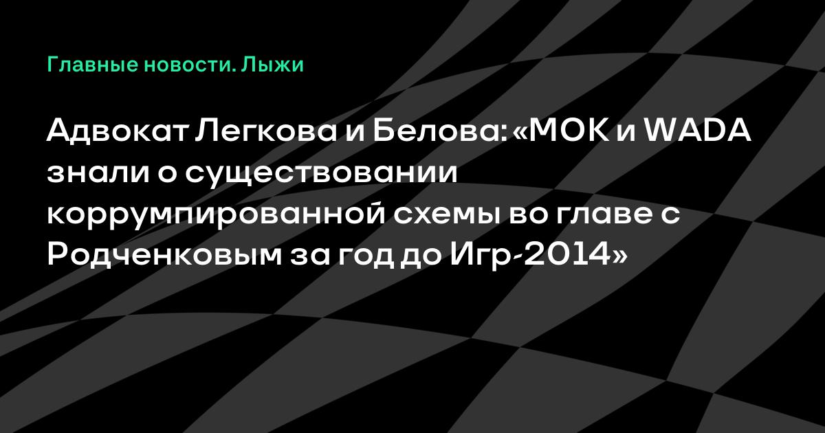Кристофф Вишеман, адвокат российских лыжников Александра Легкова и Евгения Белова, заявил о том, что МОК и WADA знали о существовании коррумпированной схемы во главе с Григорием Родченковым за год до Игр-2014, но допустили его присутствие на Олимпиаде в Сочи.