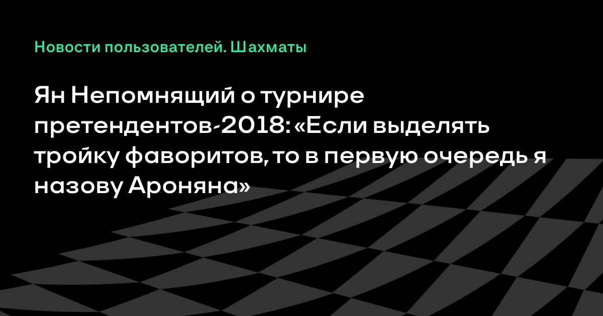 Ян Непомнящий о турнире претендентов-2018: «Если выделять тройку фаворитов, то в первую очередь я назову Ароняна»