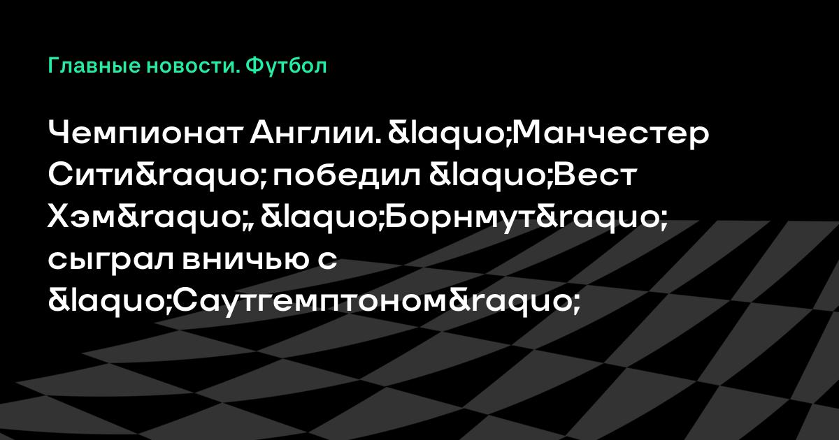 Чемпионат Англии. «Манчестер Сити» победил «Вест Хэм», «Борнмут» сыграл вничью с «Саутгемптоном»