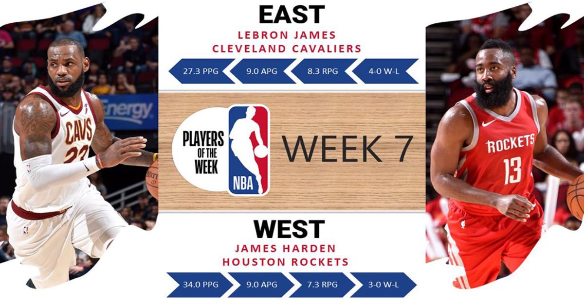 Форвард «Кливленда» ЛеБрон Джеймс и защитник «Хьюстона» Джеймс Харден признаны игроками недели в Восточной и Западной конференциях НБА соответственно.
