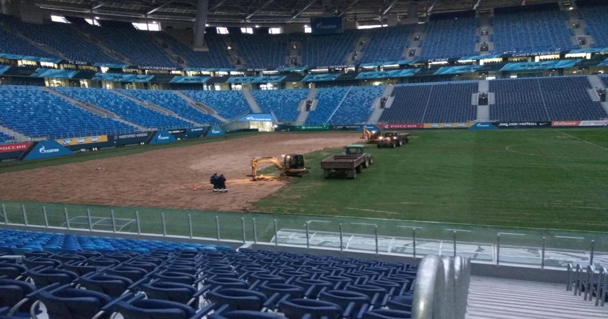 «В настоящий момент «Зенит» своими силами ведет работу по замене верхнего слоя поля, чтобы подготовить покрытие к возобновлению сезона», – сказали в пресс-службе.