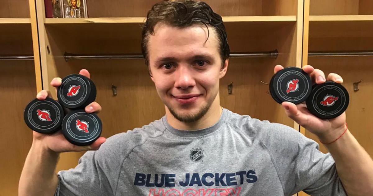 Первая звезда – форвард «Коламбуса» Артемий Панарин с 5 голевыми передачами в матче с «Нью-Джерси» (5:3).