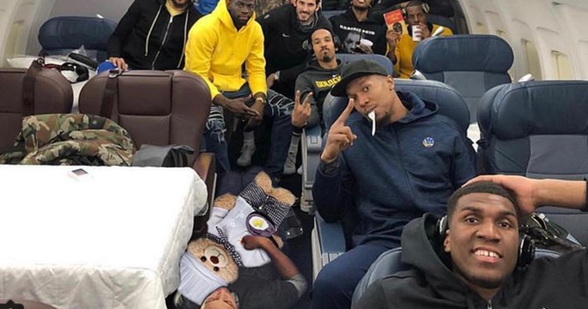 Разыгрывающий «Голден Стэйт» Стеф Карри с иронией откликнулся на появление командной фотографии калифорнийцев в самолете и поздравил товарищей с удачным выездом.