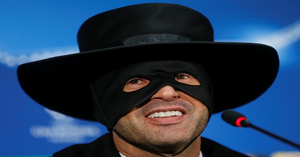 Напомним, Фонсека заявил, что придет на пресс-конференцию в костюме Зорро, если команда выйдет в плей-офф, и после победы над «Манчестер Сити» (2:1) выполнил свое обещание.