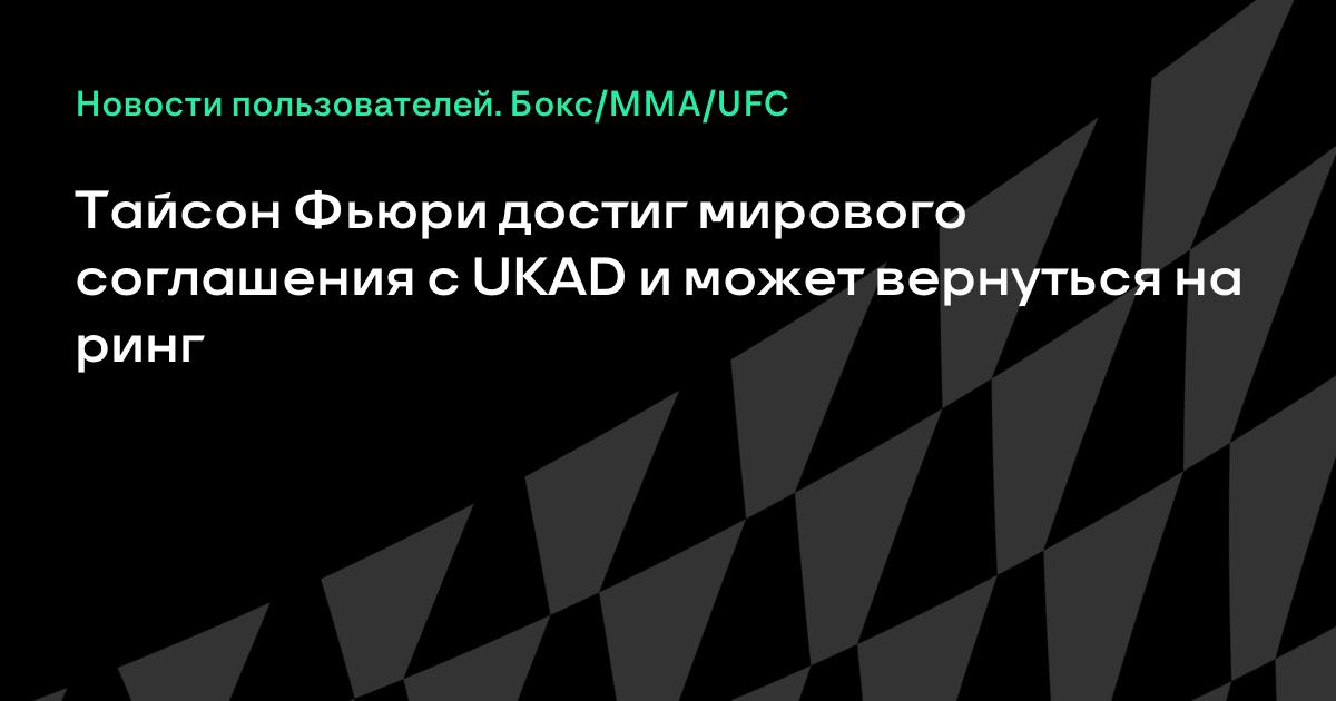 Британский боксер Тайсон Фьюри достиг мирового соглашения с Британским антидопинговым агентством (UKAD) и в ближайшее время может вернуться на ринг, сообщается на официальном сайте организации.