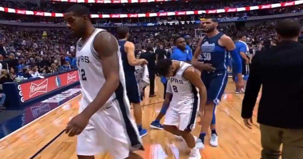 Центровой «Далласа» Сала Межри во время недавнего матча с «Сан-Антонио» пытался ударить разыгрывающего соперника Патти Миллса ногой, когда тот покидал площадку.