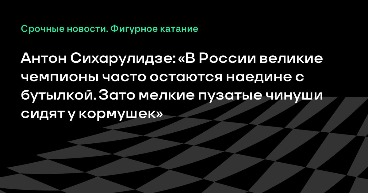 К сожалению, в нашей стране великие чемпионы часто остаются у разбитого корыта наедине с бутылкой. Зато функционерчики и мелкие пузатые чинушки сидят у кормушек десятилетиями», – сказал Сихарулидзе.