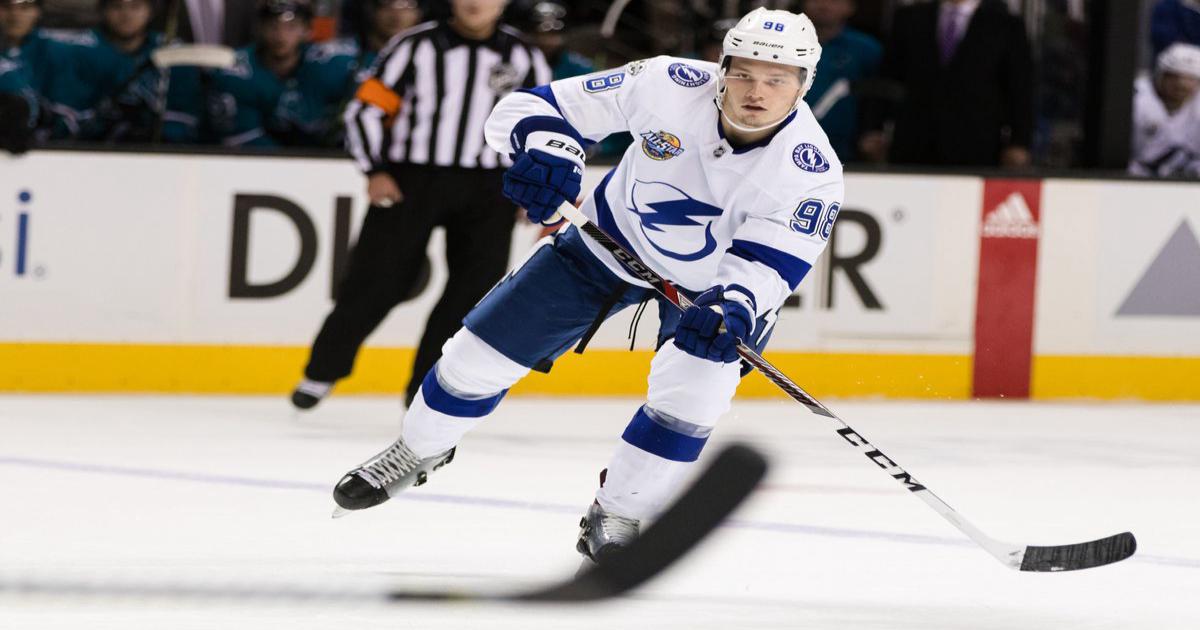 Защитник «Тампы» Михаил Сергачев отметился заброшенной шайбой в матче с «Колорадо» (6:5).