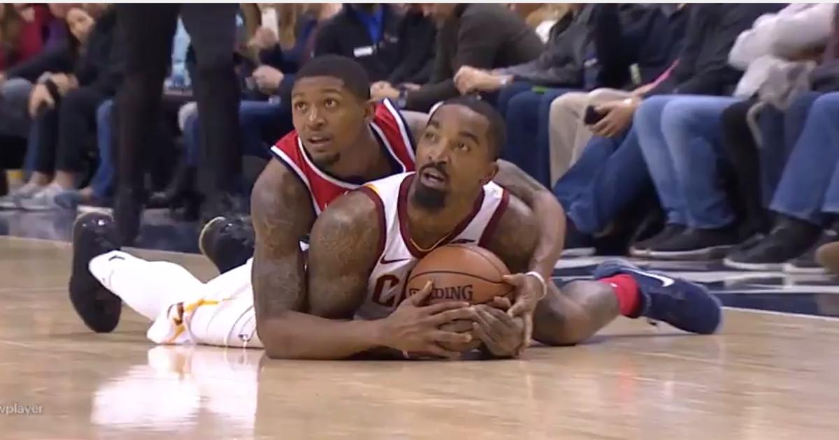Защитник «Кавальерс» Джей Ар Смит во время матча с «Вашингтоном» (106:99) в воскресенье стал исполнителем необычного перехвата.