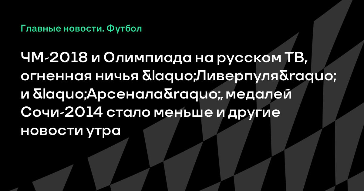 ЧМ-2018 и Олимпиада на русском ТВ, огненная ничья «Ливерпуля» и «Арсенала», медалей Сочи-2014 стало меньше и другие новости утра