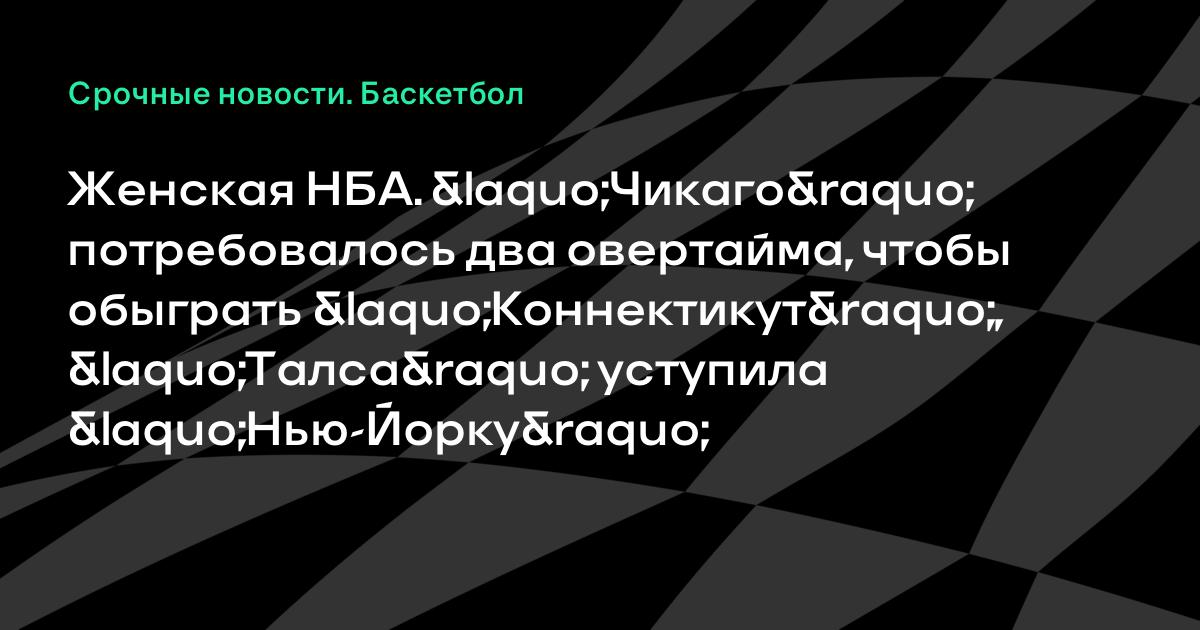 Женская НБА. «Чикаго» потребовалось два овертайма, чтобы обыграть «Коннектикут», «Талса» уступила «Нью-Йорку»