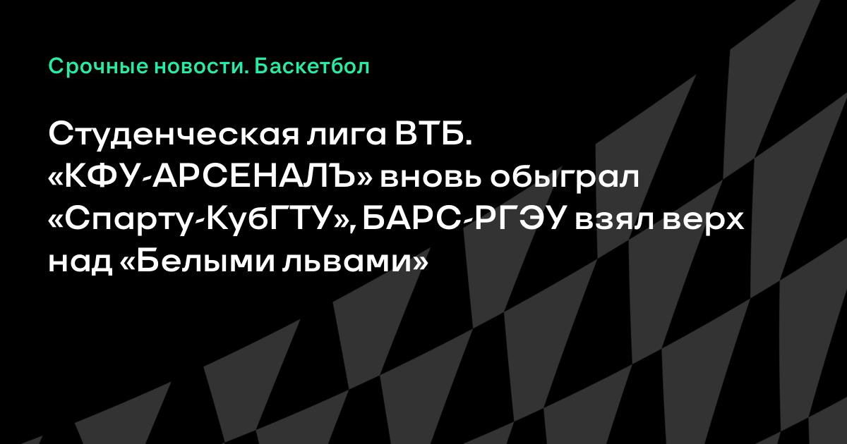 Студенческая лига ВТБ. «КФУ-АРСЕНАЛЪ» вновь обыграл «Спарту-КубГТУ», БАРС-РГЭУ взял верх над «Белыми львами»