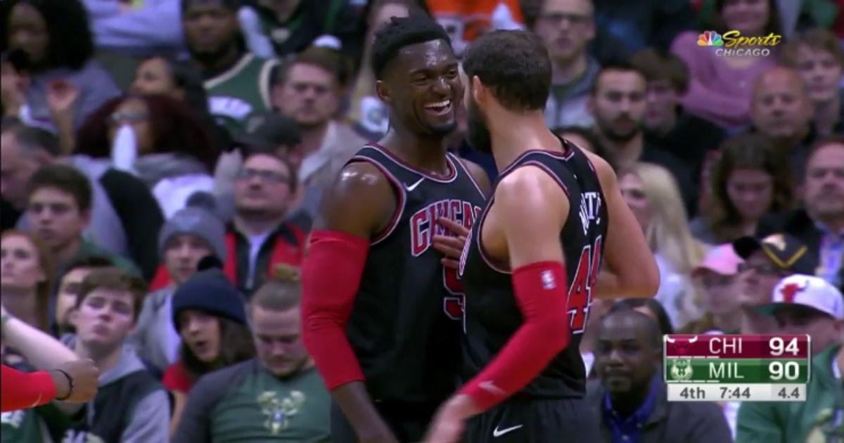 Игроки «Чикаго» Никола Миротич и Бобби Портис наладили взаимоотношения, о чем свидетельствует один из моментов в матче с «Милуоки» (115:106).