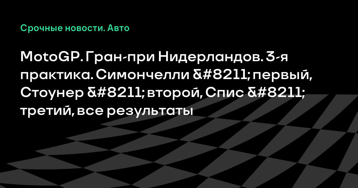 MotoGP. Гран-при Нидерландов. 3-я практика. Симончелли – первый, Стоунер – второй, Спис – третий, все результаты