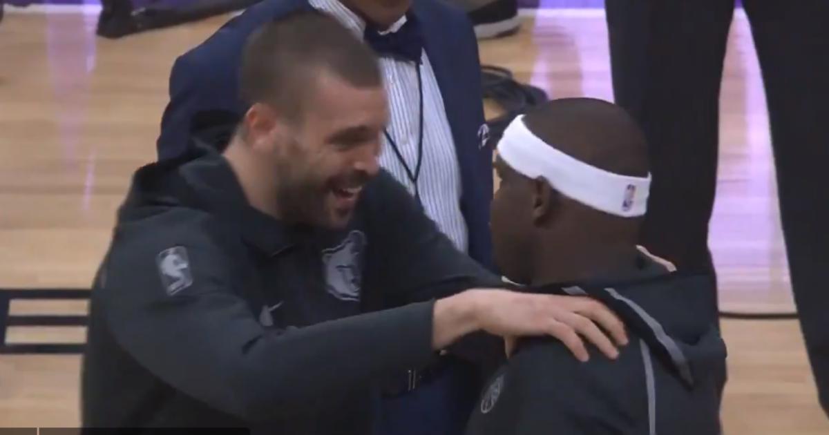 Центровой «Мемфиса» Марк Газоль и форвард «Сакраменто» Зак Рэндолф тепло поприветствовали друг друга перед матчем между командами.