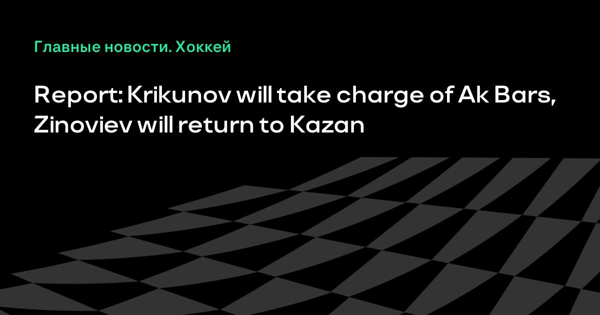 Report: Krikunov will take charge of Ak Bars, Zinoviev will return to Kazan