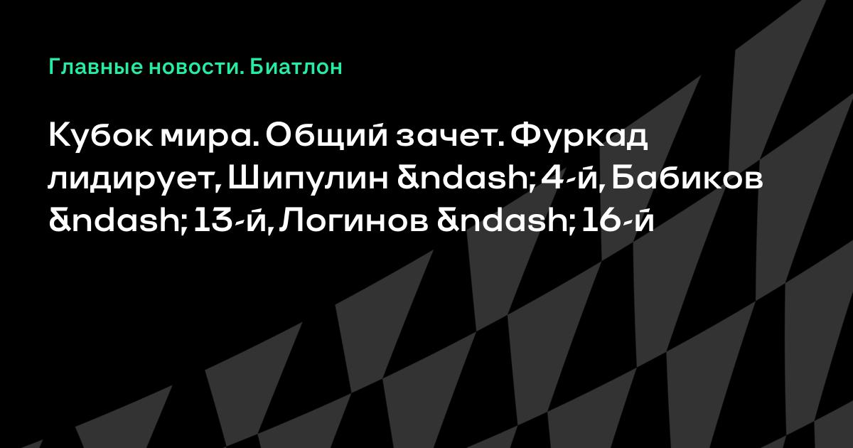 Кубок мира. Общий зачет. Фуркад лидирует, Шипулин – 4-й, Бабиков – 13-й, Логинов – 16-й